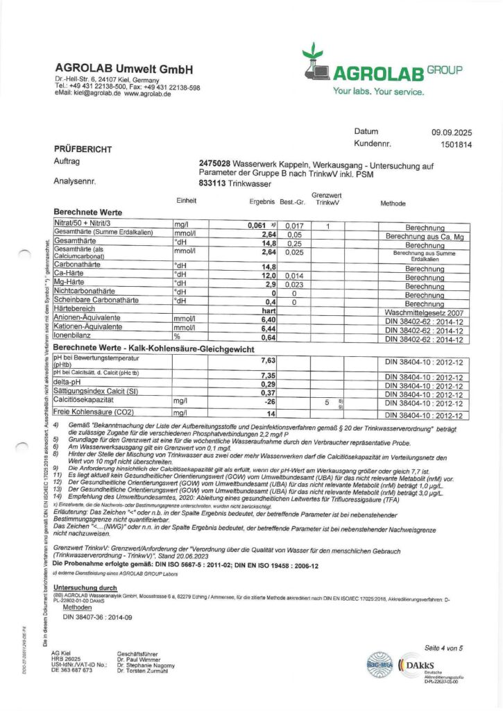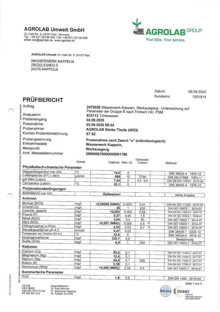 Alternativ können Sie das Dokument auch als PDF betrachten oder direkt herunterladen: Trinkwasserqualität Prüfbericht